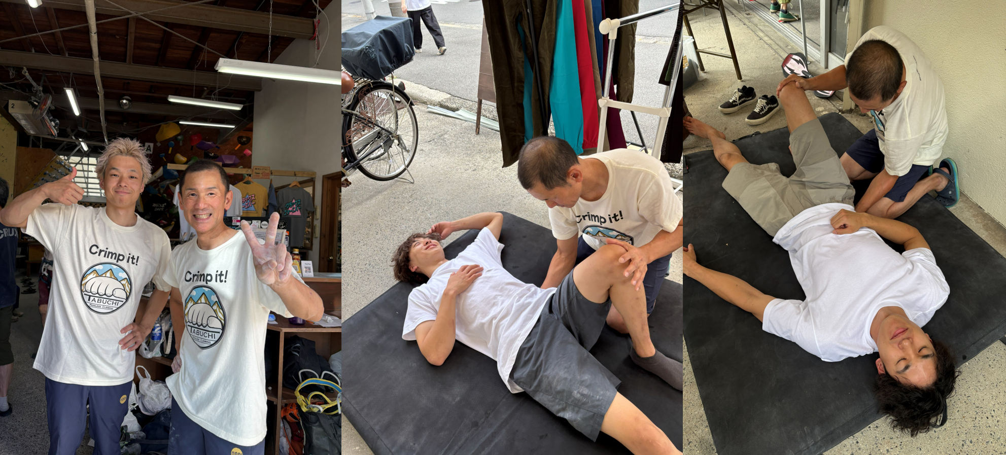 2025.10.11(sat),12(sun)Crux大阪で開催された「みにぱ2025」に参加しました。ゲストセッターの楢崎明智選手・天笠颯太選手への施術、ゆーじ君とのペアコーデ、大会参加者のお悩み相談やセルフケアアドバイスなど、大変有意義な二日間となりました。個人的には、初コンペ&初リードと初ものづくしで記念受験的な成績でお恥ずかしい限りでした(笑)。